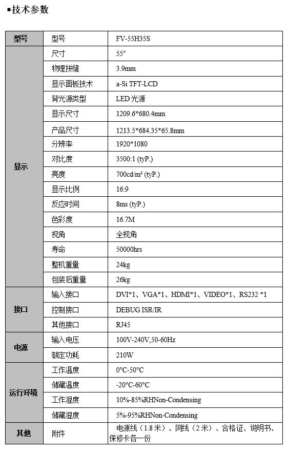 FV-55H35S 55寸3.5拼缝高亮液晶拼接显示屏