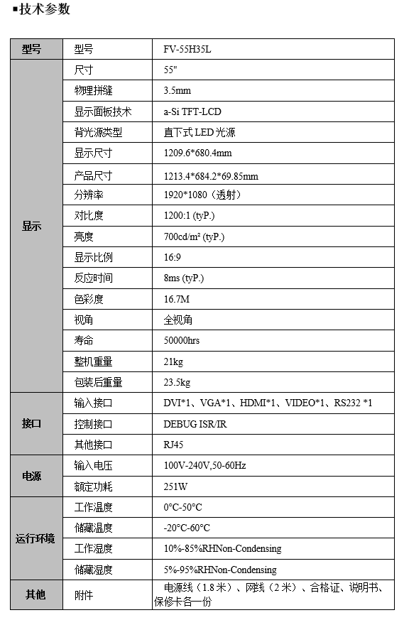 FV-55H35L 55寸3.5拼缝高亮液晶拼接显示屏