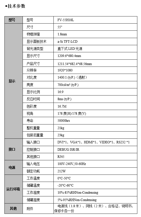 FV-55H18L 55寸1.8拼缝高亮液晶拼接显示屏