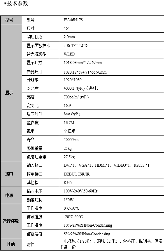 46寸液晶拼接显示单元